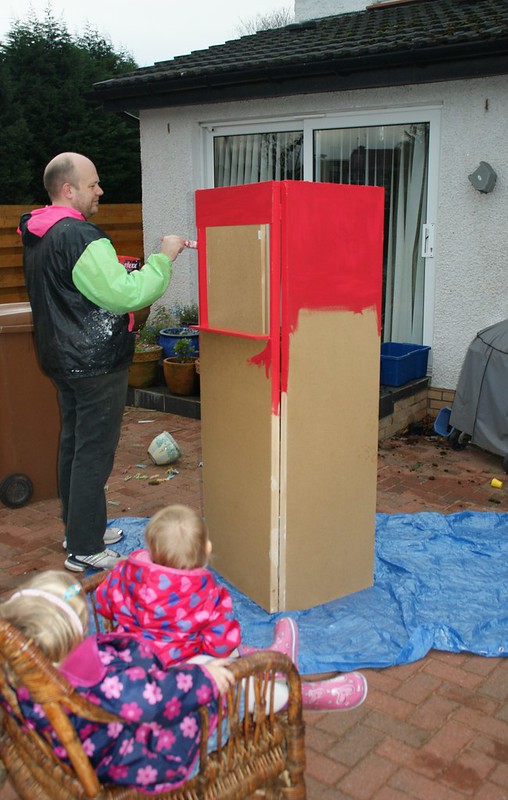 It turns out, in fact, to be a puppet theatre that he's been working on so he can throw puppet shows in Danish for the three youngest kids - he has a box of puppets upstairs - how sweet! Though rumour has it he expects me to paint it before use.